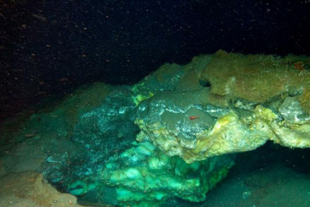 Methane hydrate is a bizarre form of "fire ice", where methane is trapped in a cage of water molecules. It forms a buried layer beneath the seabed in lots of parts of the world, and sometimes outcrops at the seafloor, but most of those outcrops are on continental slopes at less than 2 km deep.