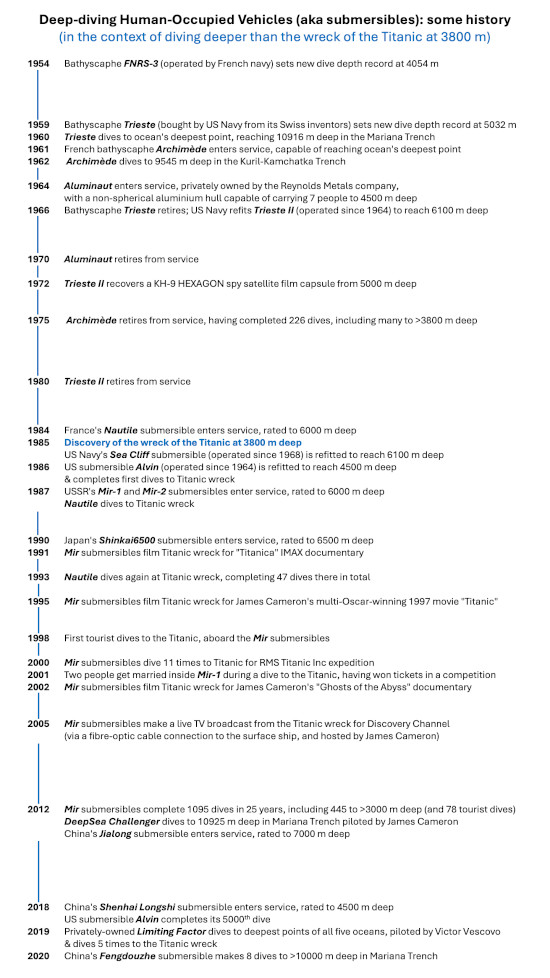 Five people died when the Titan submersible imploded during its descent to the wreck of the Titanic last week. Some commentators have described deep-diving submersibles as inherently risky and experimental (e.g. Boris Johnson in his Daily Mail opinion column), but their actual history shows that is far from the case.
