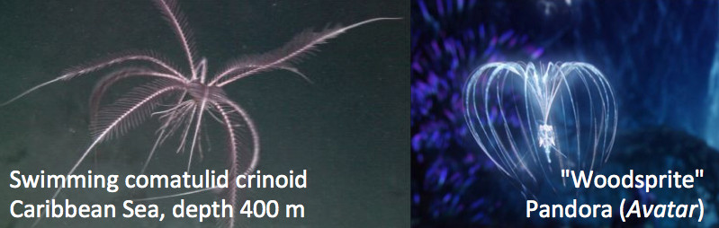 And swimming crinoids (feather stars) resemble the "woodsprite" seeds of the World Tree (to me, at least):