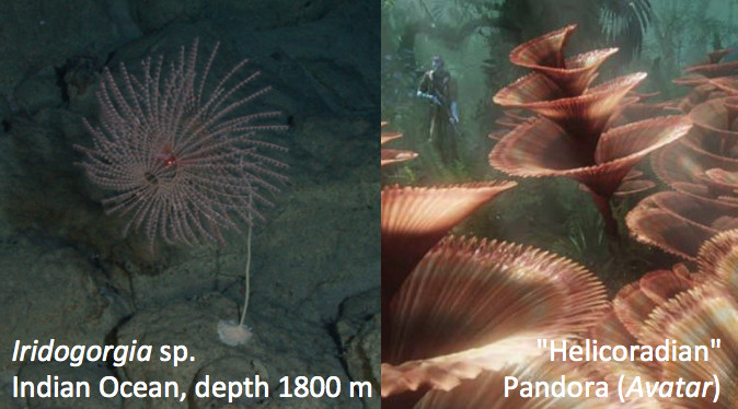 Perhaps not surprisingly, James Cameron's Avatar appears to have some deep-sea inspiration, e.g. Iridogorigia coral & "helicoradians":