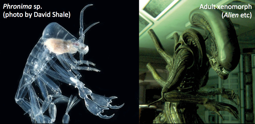 (BUT there is no actual evidence, beyond coincidence and perhaps wishful thinking from deep-sea sci-fi fans, that Phronima inspired the cinematic creation, as explained here)